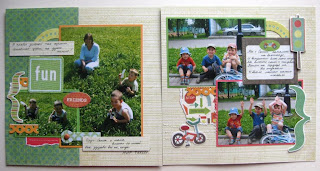 ОтветитьУдалитьЮля, разворот очень такой летний зелененький, скобочки, светофорчик, велосипедик просто отпад!
